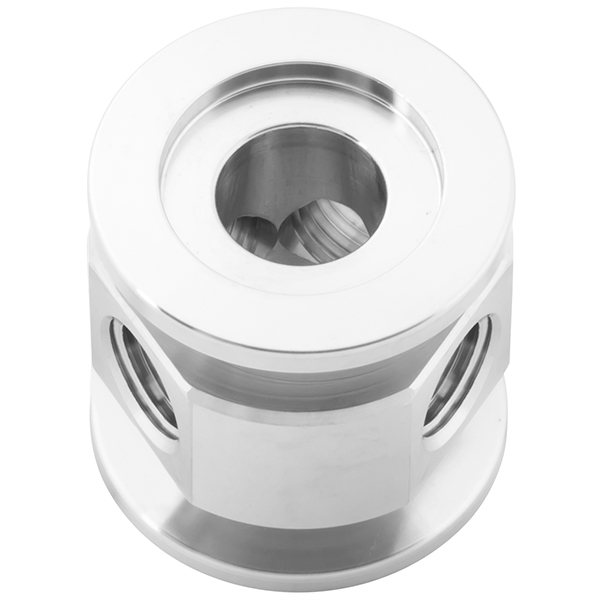 These adapters are KF-16 to 1/8 inch quadruple 4 way NPT-females. They are commonly used to make connections between ISO-KF and 1/8 inch male pipe thread fittings. The ISO-KF flanges are often called quick flange fittings because they are quick to assemble. A circumferential clamp and centering ring form the vacuum seal between the connecting flanges. The centering ring contains a rubber elastomer o-ring. The standard sizes for quick flange fittings are KF-10, KF-16, KF-25, KF-40, and KF-50 with flange sizes NW-10, NW-16, NW-25, NW-40, and NW-50, respectively. They are made of corrosive resistant stainless steel.